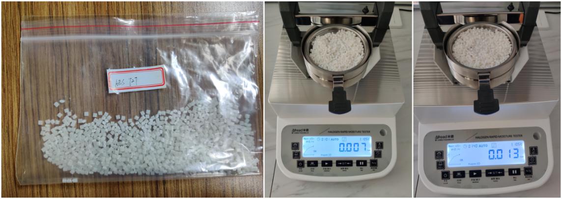 测试样品:90℃烘干四小时的ABS塑料颗粒