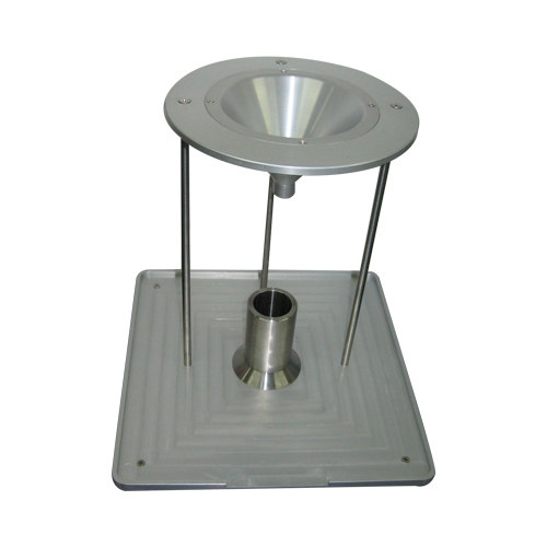 支撑剂以固定高度流入一定容积的测试桶内,称得支撑剂质量,通过公式计算出支撑剂的体积密度。