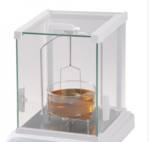 ②将样品完全浸入水中,测水中重量,按M键记忆,直接显示密度值。