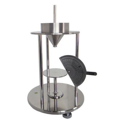 QL-105型注入限定底面法安息角测试计是厦门群隆仪器有限公司依据国家标准GB/T 16913.5-1997(本标准参照采用ISO 4324:1997粉状和粒状表面活性剂——粉体和颗粒——休止角的测定)的规定设计、生产。本装置适用的测定对象是粉尘,采用注入限定底面法测定粉尘安息角,与ISO 4324:1997的主要技术差异是不测量堆积在限定底面上的粉尘高度而采用量角器直接测定粉尘安息角。