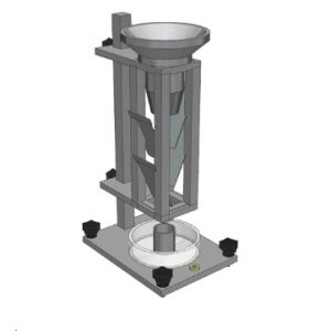 支架用以固定漏斗。底座用于安装支架和接收器,请调整水平、稳固且无振动。调整支架高度并用扳手固定住,将漏斗安装到支架上。接收器(不锈钢量杯)置于底座上,用来收集流下的粉末