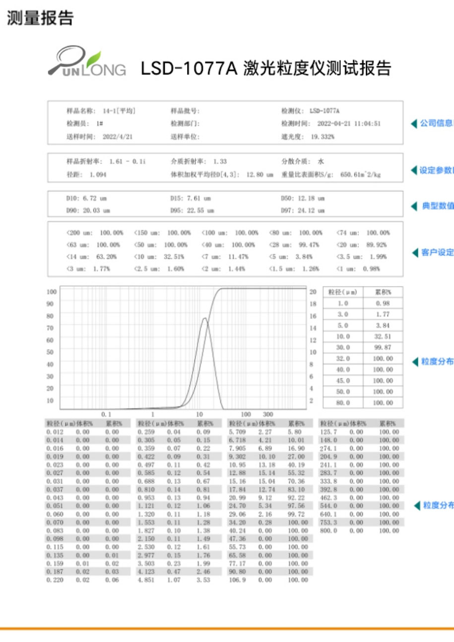 | 自行DIY | 用户自定义要显示的数据,根据粒径求百分比、根据百分比求粒径或根据 | |