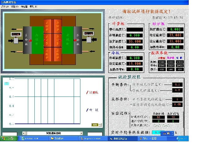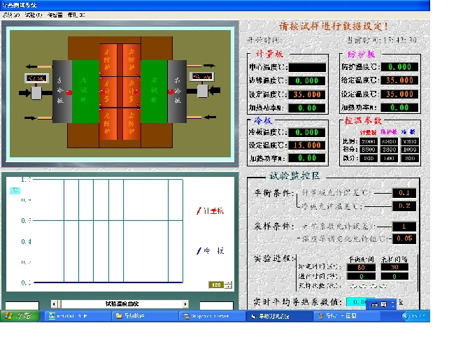 - 连接好微机系统,接通电源,启动电脑进入WinXP操作系统,双击“导热系数”图标进入自动控制系统。
