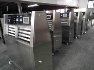 本產品採用最佳类比阳光中UV段光谱的萤光紫外灯,并结合控温、供湿等装置来类比对材料造成变色、亮度、强度下降、开裂、剥落、粉化、氧化等损害的阳光(UV段)高温、高湿、凝露、黑暗淋雨週期等因素,同时通过紫外光与湿气之间的协同作用使得材料单一耐光能力或单一耐湿能力减弱或失效,从而广泛用於对材料耐气候性能的评价,设备具有提供最好的阳光UV模拟,使用维护成本低廉,易於使用,设备採用控制自动运行,试验週期自动化程度高,灯光稳定性好,试验结果重现率高等特点。 (适合小件产品或取样测试)片状产品为宜。