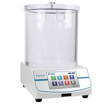 通过对真空室抽真空,使浸在水中的试样产生内外压差,观测试样内气体外逸情况,以此判定试样的密封性能;通过对真空室抽真空,使试样产生内外压差,观测试样膨胀及释放真空后试样形状恢复情况,以此判定试样的密封性能。